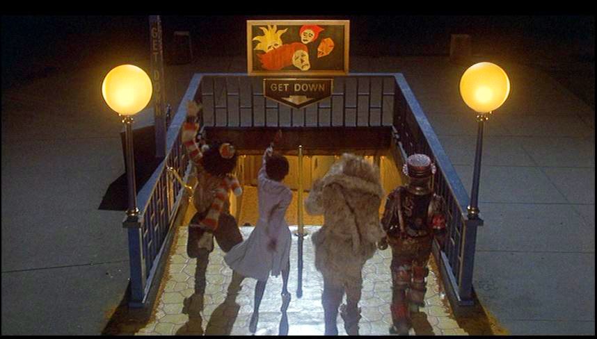 | Dorothy Learns the Value of Friendship In another of the film's witty, New York design concepts, the Yellow Brick Road leads to a subway entrance where a sign directs pedestrians to "Get Down" |