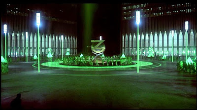 | The Emerald City sequence, filmed in the Plaza of the World Trade Center Towers |