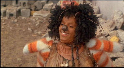 I like Diana Ross a great deal. Indeed, I get teased a lot by my partner due to my baseless belief that she can't be as bad as her diva reputation attests, because she has such kind-looking eyes (I also think Faye Dunaway has kind eyes...so maybe my partner has a point). I find Diana Ross very likable in The Wiz but I'm the first to say that she really needed to turn it down a notch. Her idea of conveying Dorothy's shyness is to approach the role as though she were portraying Laura in The Glass Menagerie...with all of the attendant ponderousness. She's far too high-strung and neurotic from the start. By the time she reaches Oz you almost expect her head to fly off, she's so unwound.